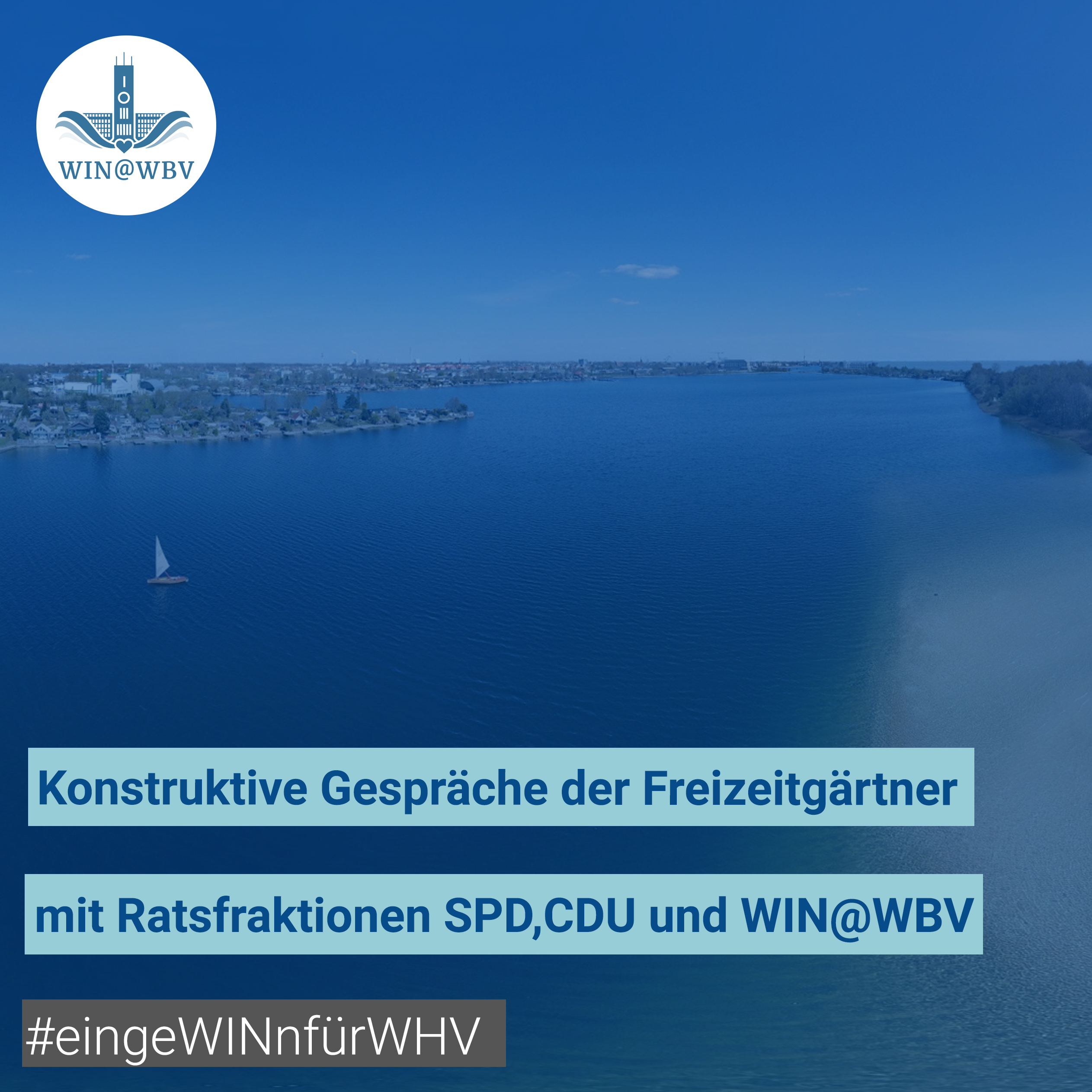 Beim anschließenden Austausch zeigten sich die Ratsvertreter Detlef Schön, Norbert Brandt und Kristian Stoermer (SPD), Anja Mandt und Uwe Heinemann (CDU) sowie Markus Bulla und Olaf Fischer (WIN@WBV) erfreut über die Bestrebungen des Vereins, dass „Erlebnis Banter See“ für alle Bürgerinnen und Bürger der Stadt weiter aufzuwerten. Beide Seiten waren sich dabei einig, dass die Freizeitgärten am Banter See ein Stück Nachkriegsgeschichte darstellen, deren Bestand langfristig außer Zweifel steht. Zugleich war man sich einig, dass die konkrete Aufstellung eines Nutzungs- und Entwicklungsplans des Freizeit- und Naturareals Banter See für die Bürgerinnen und Bürger der Stadt endlich weitergehen muss.