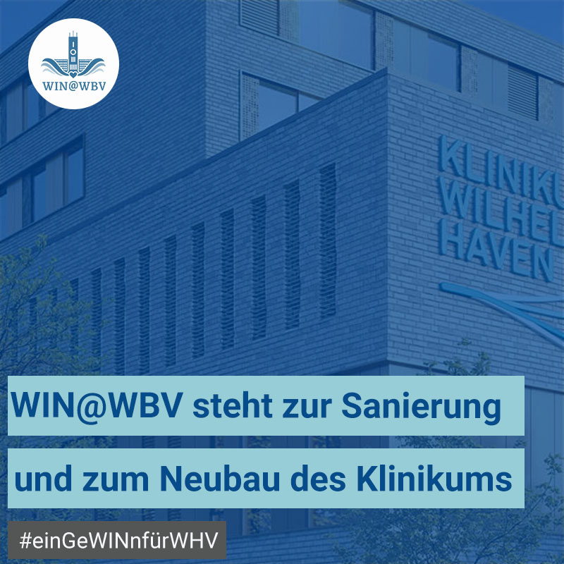 Die Ratsmitglieder von WIN@WBV bekräftigen ihren Plan, das Klinikum in Wilhelmshaven neu zu bauen und perspektivisch gemeinsam mit den Friesland-Kliniken in kommunaler Trägerschaft zu führen. Die sich abzeichnenden Reformen im Krankenhausbereich machen eine detaillierte Abstimmung des Leistungsangebot in der Region ohnehin nötig und auch der Fachkräftemangel zwinge zu gemeinsamen Planungen.